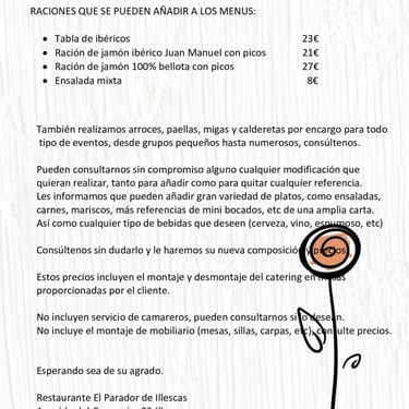 Servicio de catering de El Parador de Illescas: convertimos tu evento en un festín inolvidable. ¡Contacta ya y sorprende a tus invitados!